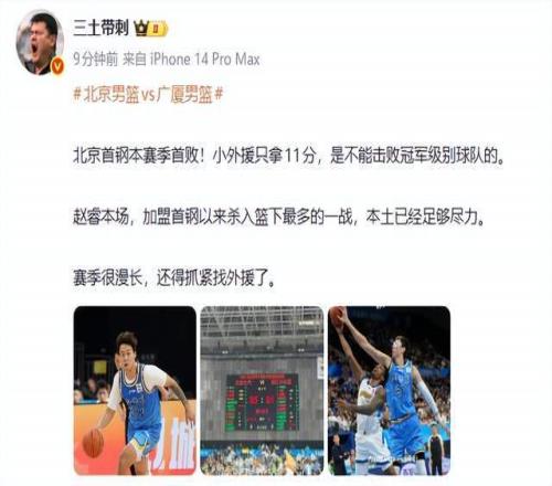 三土带刺老师则表示:北京首钢本赛季首败!小外援只拿11分,是不能击败冠军级别球队的。赵睿本场,加盟首钢以来杀入篮下最多的一战,本土已经足够尽力。赛季很漫长,还得抓紧找外援了。