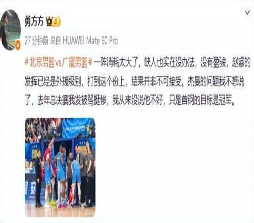 看来,这位北京男篮的自己人,还是不敢说太狠,但人家都明白问题出在哪里。