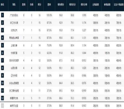 CBA常规赛第八轮的较量已经全部打完,经过这一轮的较量,积分榜排名又发生了全新的变化。新疆男篮大胜广州男篮,宁波男篮大胜四川男篮,福建男篮力克吉林男篮,江苏男篮不敌青岛男篮,山东男篮击败山西男篮,广东男篮大胜天津男篮,北京首钢85-91惜败浙江广厦遭遇赛季首败,上海男篮大胜北控男篮,辽宁男篮不敌深圳男篮。CBA前四的排名又发生了全新的变化,广东八战全胜升至榜首,浙江广厦后来居上,北京首钢跌至第三,青岛男篮保住第四。