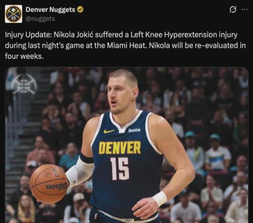 坏消息,掘金队尼古拉约基奇因膝盖过度伸展将长期缺阵