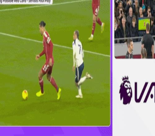 第30分钟,场上出现突发情况,哈维-西蒙斯拼抢当中踩踏范戴克小腿,裁判回看VAR之后,果断出示红牌,热刺剩下10人作战。