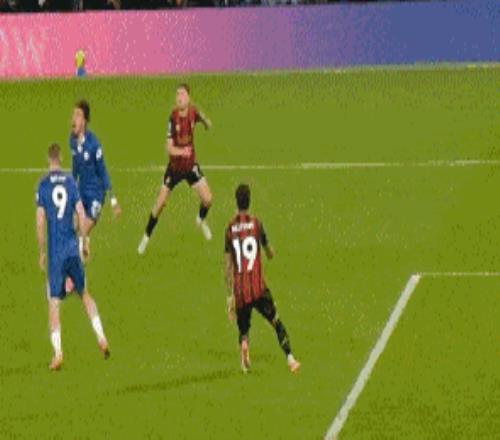 第7分钟,伯恩茅斯界外球掷到禁区内,前点头球后蹭,布鲁克斯后点头球攻门,球被桑切斯扑出,布鲁克斯跟进门线捅射得手,VAR确认进球有效,伯恩茅斯1-0领先。