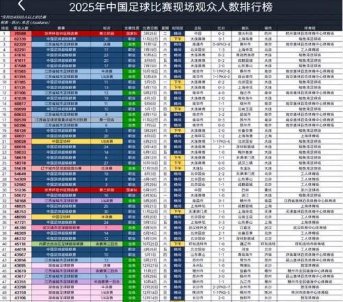 此外,25年上座人数前10名中,大连英博同样是占据5席,还包括大连英博主场与青岛西海岸、成都蓉城、山东泰山以及北京国安的重磅较量,现场观众人数都超过了6万人,展现了大连英博火爆的球市氛围。观众人数前10名的中国足球比赛中,中超占到了6席,只有北京国安与上海申花这1场比赛不是在梭鱼湾球场进行的。
